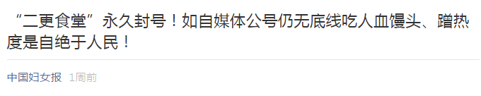 前几天,郑州空姐乘滴滴顺风车被害事件成为舆论焦点,知名自媒体公众号“二更食堂”发布的推文因文字低俗不堪及消费逝者激起众怒,遭到众多网友自发抵制。浙江省网信办会同杭州市网信约谈该公众号主要负责人,该公众号被微信平台封号7天。5月13日晚,二更创始人丁丰发布致歉信,宣布二更食堂公号永久关闭。