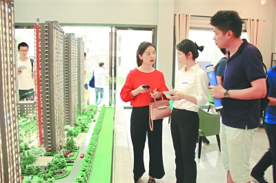 在售楼中心,工作人员在沙盘处对意向购房者介绍购房资格、周边配套等情况。现场设有银行咨询点,供意向购房者咨询商业贷款、组合贷款及公积金贷款相关事宜。符合购房条件的大学毕业生可现场提交材料。由于部分大学毕业生携带资料不全,工作人员现场准备了若干文件袋,并整理好所差材料清单,交给大学毕业生,提供周到服务。