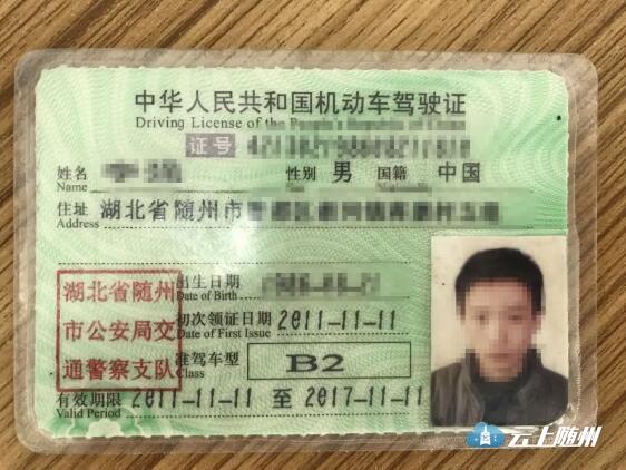 5月21日10时许,交警一大队民警在季梁大道与清河路交叉路口执勤时,对一辆号牌为鄂S327xx的重型普通货车进行检查。该车驾驶员出示了一本名叫李某、准驾车型为B2的机动车驾驶证及鄂S327xx 的重型普通货车行驶证。