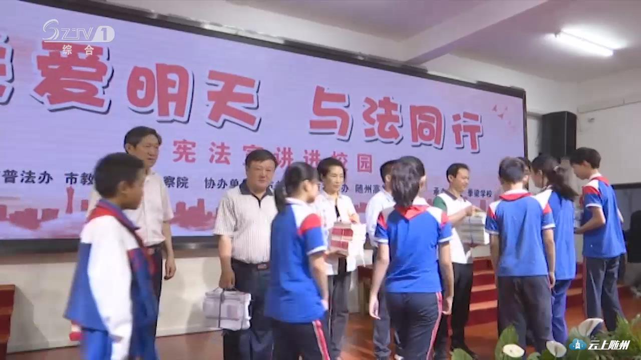 记者在法治宣讲活动现场看到,高新区季梁学校部分学生正在集中诵读宪法第二章公民的基本权利和义务,同学们铿锵有力的诵读声在校园中回荡。