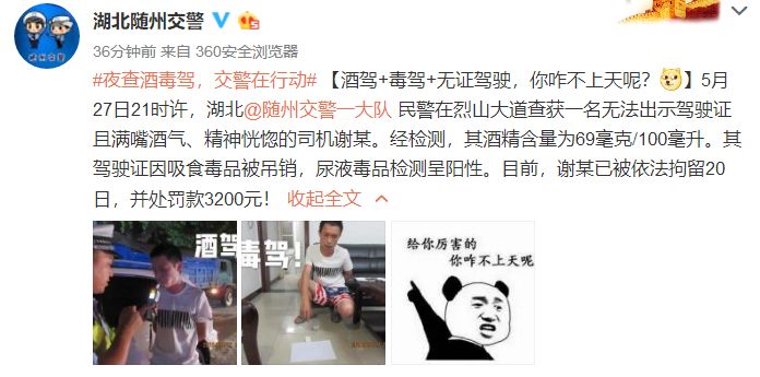 无证驾驶+酒驾+毒驾,你咋不上天呢~
