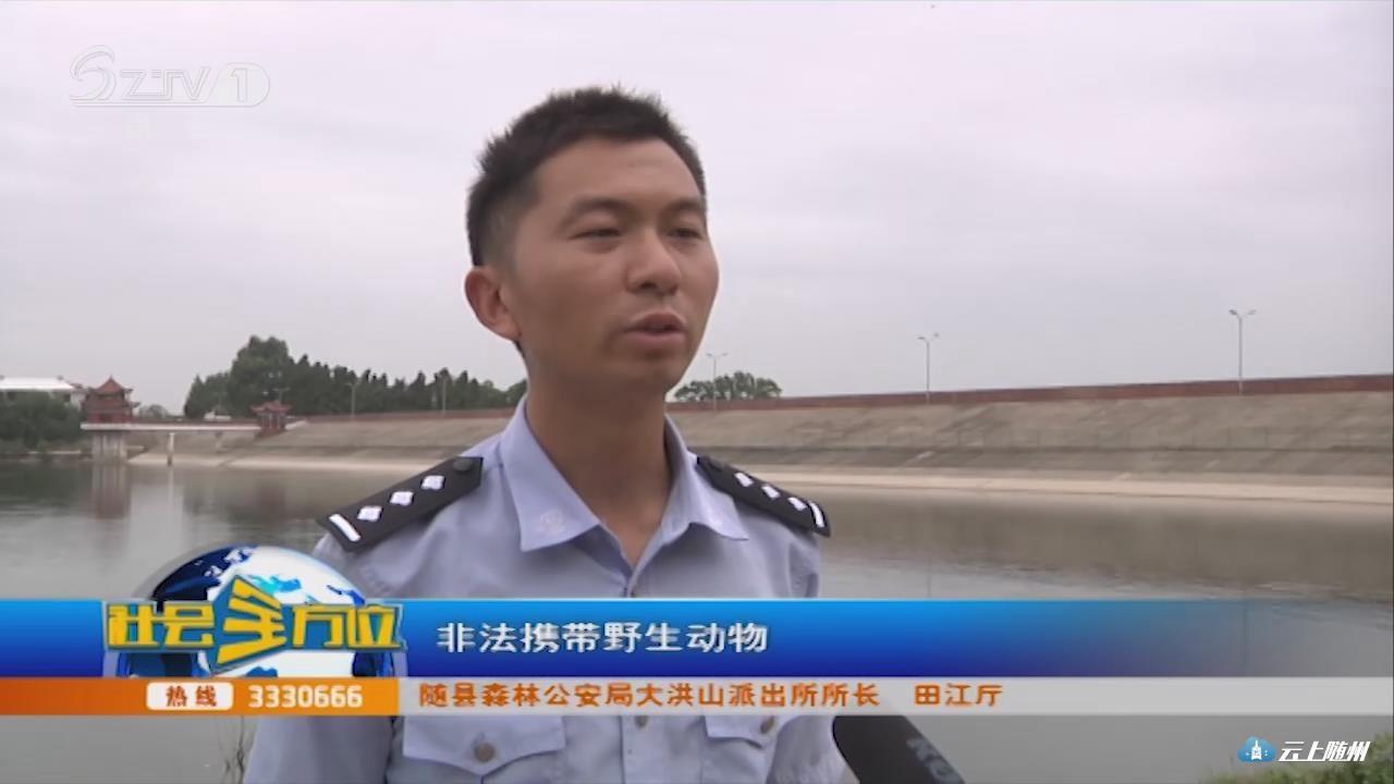 【采访】随县森林公安局大洪山派出所所长 田江厅:接到高警随州大队民警移交案件称,在汉十高速均川收费站发现一辆从襄阳开往珠海的大巴车非法携带野生动物。