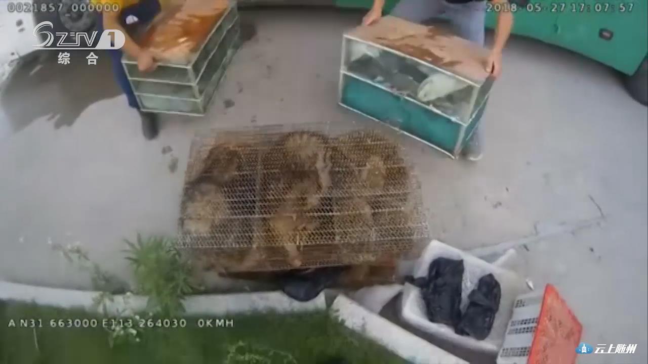 【采访】随县森林公安局大洪山派出所所长 田江厅:湖北省重点野生保护动物,黑水鸡100只,珠颈斑鸠40余只,夜鹭50余只,棉蛇50余斤,猪獾10只,果子狸1只,狗獾2只,刺猬50只。