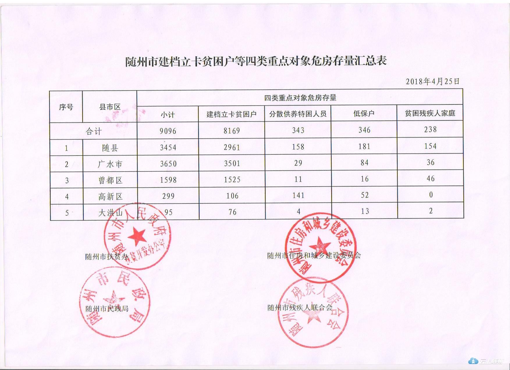 附件:1、随州市建档立卡贫困户等4类重点对象危房存量汇