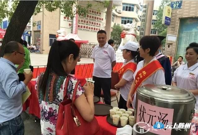爱心商家在考点门口为考生和家长们准备了解渴消暑,满载祝福的“状元汤”......