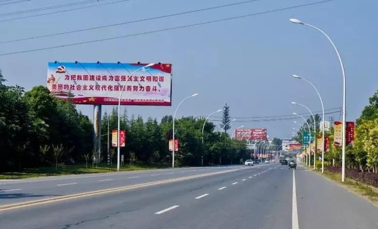 规范迎宾大道沿线农房物品摆放,清理杂物、杂草,在高速出口建围挡,悬挂大幅宣传标语。