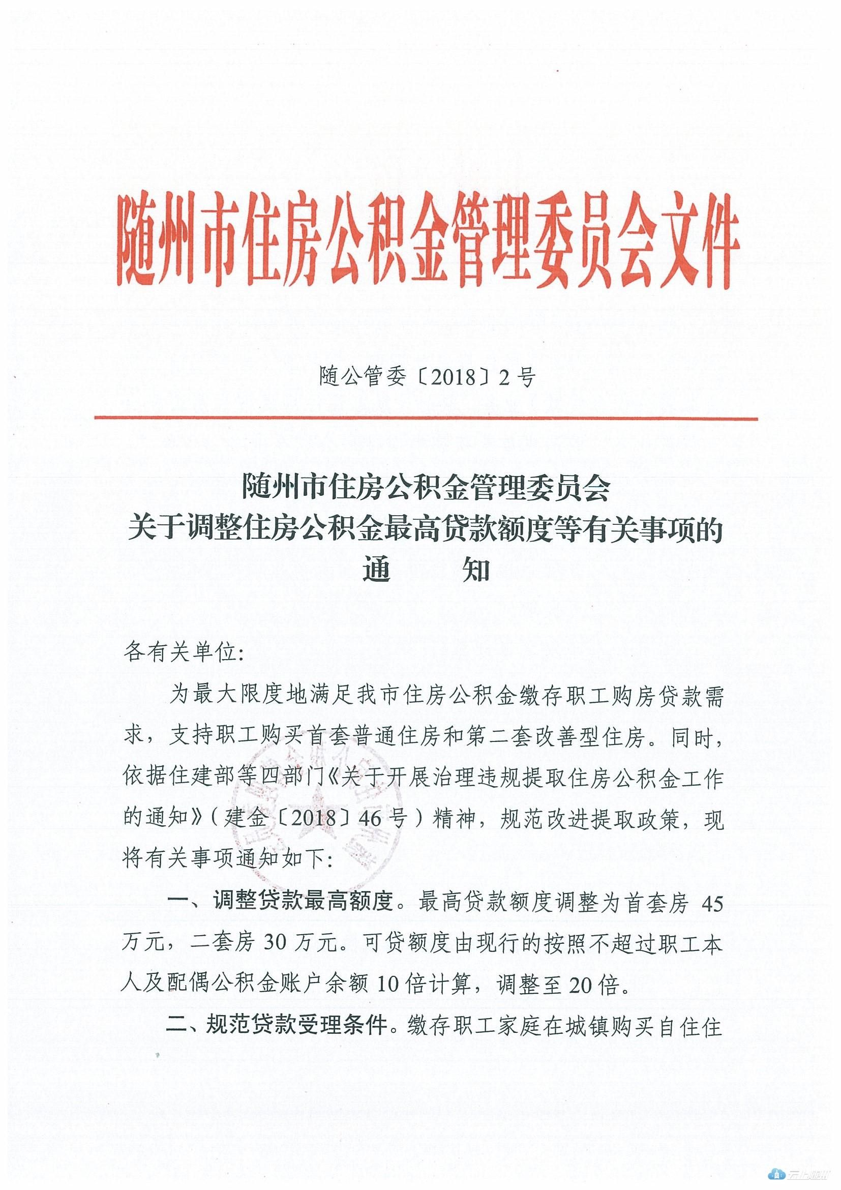 近日,随州市住房公积金管理委员会印发了《关于调整住房公积金最高贷款额度等有关事项的通知》。本次住房公积金新政的重点是,最高贷款频度调整为首套房45万元,二套房30万元;可贷额度由现行的按照不超过职工本人及配偶公积金账户余额10倍计算,调整至20倍。