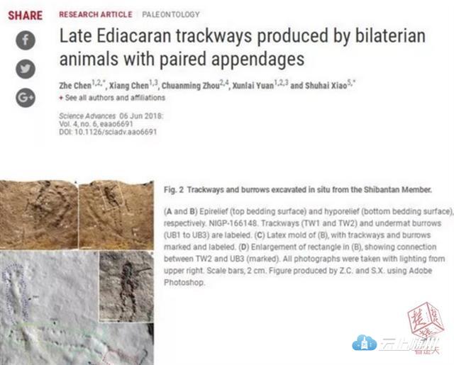 6月7日,世界顶尖权威杂志《科学》子刊《科学进展》报道一条轰动消息,中美科学家在宜昌市三斗坪镇发现距今5.5亿多年前动物足迹化石的研究成果。这些足迹由生活在寒武纪前的一种类似虾的动物留下,也是迄今发现的地球上最早的动物足迹化石。据了解,这支科研团队由中国科学院南京地质古生物研究所和美国弗吉尼亚理工大学组成,在宜昌三峡地区埃迪卡拉系灯影组(5.51亿—5.41亿年前)地层中发现的一系列足迹化石。该发现将足迹化石的记录提前到了埃迪卡拉纪,这是目前已知最古老的足迹。已知的地球生命历史上,绝大多数现代高等动物的祖先,直到5.4亿年前的寒武纪早期,才以爆发的形式突然出现,被称为“寒武纪生命大爆发”。此次发现表明,具有附肢的两侧对称后生动物,在寒武纪之前的埃迪卡拉纪便出现,这也将寒武纪大爆发的序幕再次向前推进。