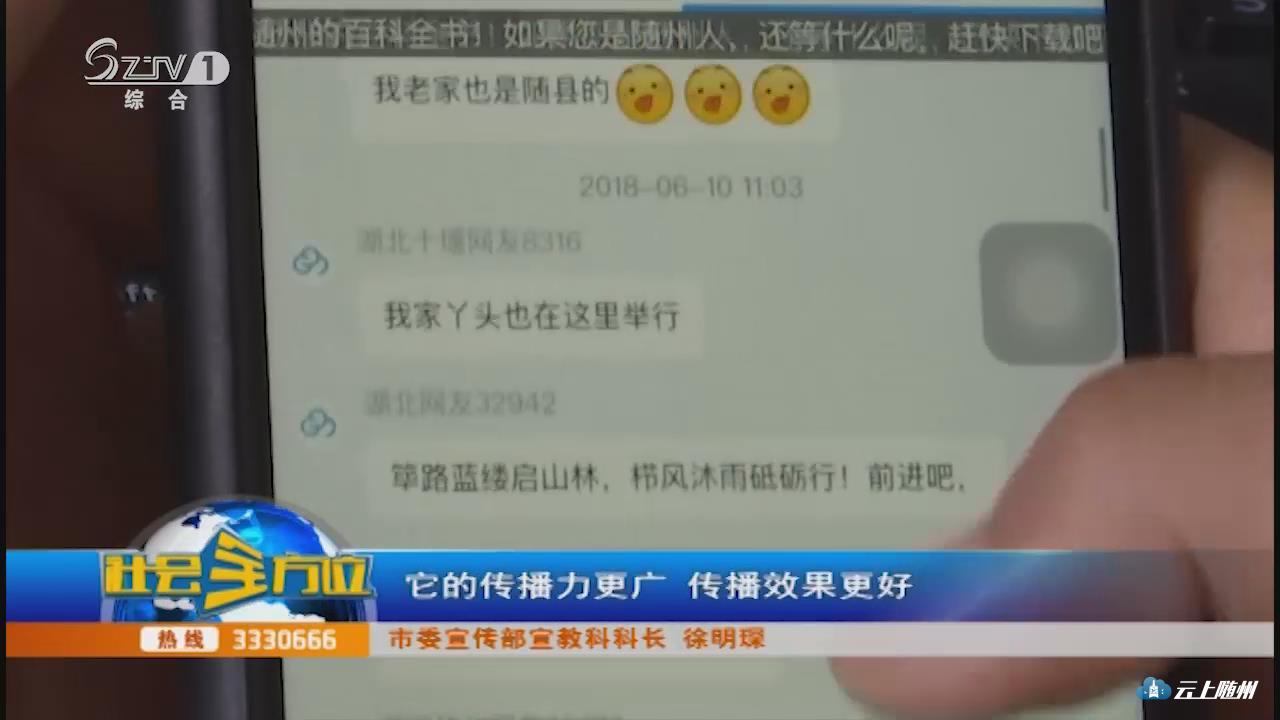 (采访:市委宣传部宣教科科长 徐明琛)今年是我们随州市第十年举办寻根节,今年寻根节我们在宣传方式上的一个最大特点,就是实现了全方位多角度融媒体的宣传,比方说,我们全国各地的观众朋友可以通过,云上随州的手机客户端,来身临其境地参与到拜祖大典,包括炎帝文化庙会,经贸洽谈会,炎帝文化高端讲坛这样的活动中来。这种宣传方式,它的传播力更广,传播效果更好,群众的参与度也更高。