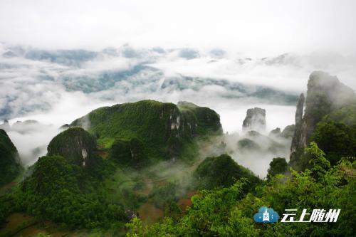 脚下云海是一夜醒来后出现的。随州人选择的观光台将扫描大自然的游客抬到了云海上。眼前云围雾绕,高低沉浮,山比云高,云比台低。烟雾绻裹着奇石异树,柔云攀绕着青山翠峰,高低的世界被多情的云划分成两界,十分的洁净、八分的朦胧,十二分的神秘。身在云上的人,仿佛就在梦幻的仙界。