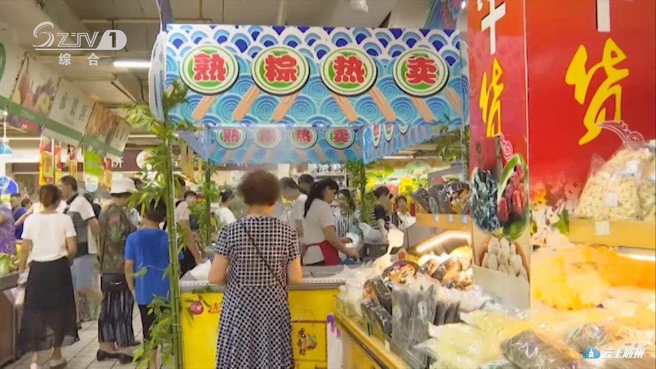 (采访:市民)为什么想着端午节要买粽子?因为是中国传统的节日,除了粽子之外,还会买些什么呢?艾蒿,蒸蒸肉。端午节就是吃粽子,除了粽子还买了什么?还买了一些鸭蛋鸡蛋。除了粽子以外,鸭蛋、皮蛋、绿豆糕等端午时令食品也非常受欢迎。端午节粽飘香,年长的人注重的是全家围坐在一起的团圆气氛,而年轻人更加偏爱的是端午节的文化。