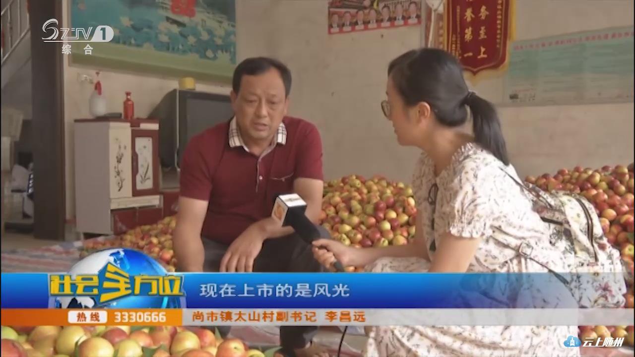 【采访】尚市镇太山村副书记 李昌远:现在上市的是风光,因为风光的品质好,硬度大,耐储运,现在我们的价格在一块三到一块四,好一点的是一块六左右,我们一个村现在大概每天销售水果在50万斤左右。