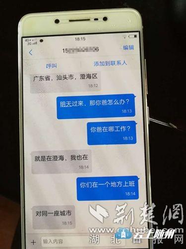 安陆民警和失联旅客儿子小刘的短信记录(警方报案登记附件截图)