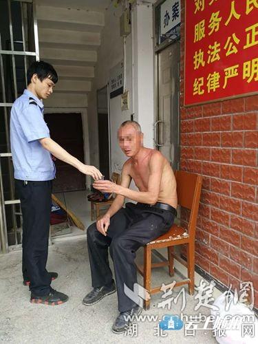 6月21日下午6时,河南失联旅客老刘在安陆市孛畈派出所等待与千里之外赶来寻父的儿子相会。通讯员 周斌 摄
