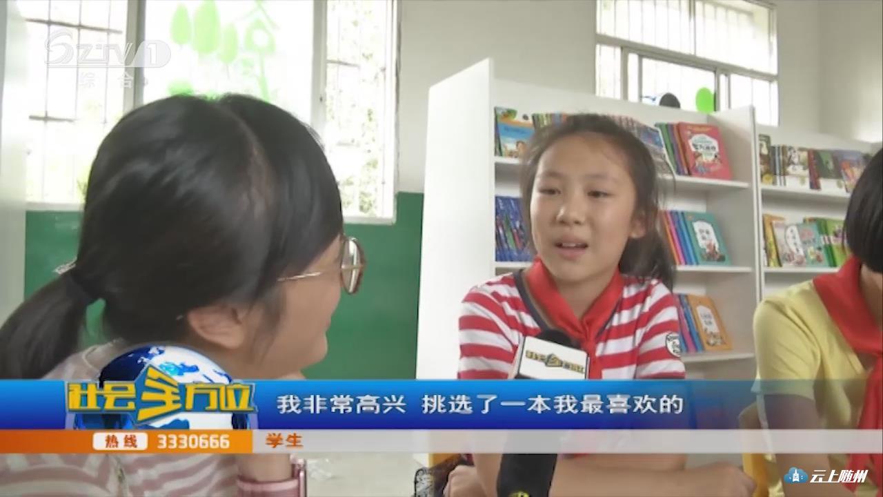 【采访】学生:今天到图书室里来,看到有很多故事书,我非常高兴,挑选了一本我最喜欢的。