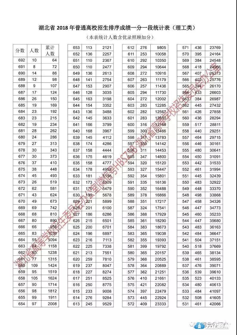 2018湖北高考一分一段表也公布啦!
