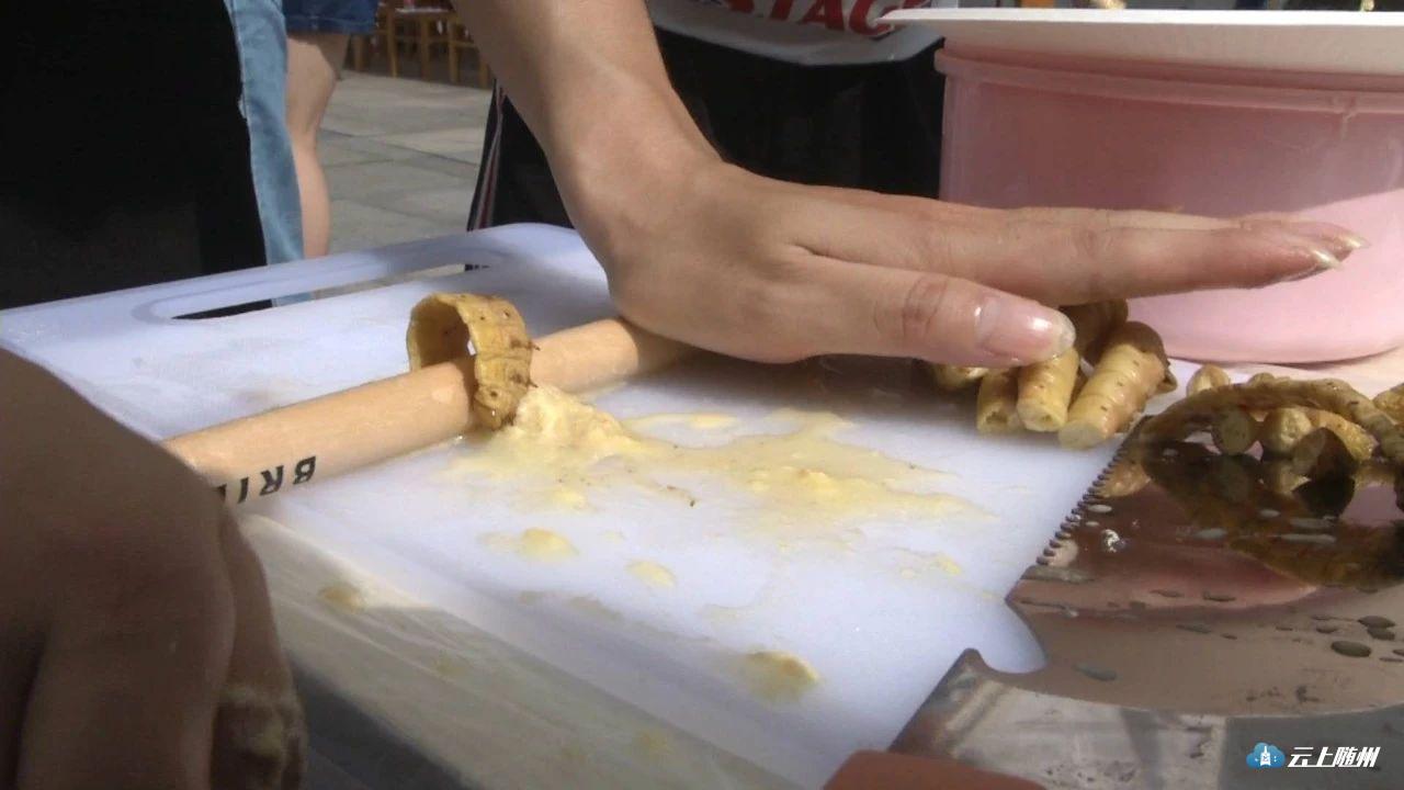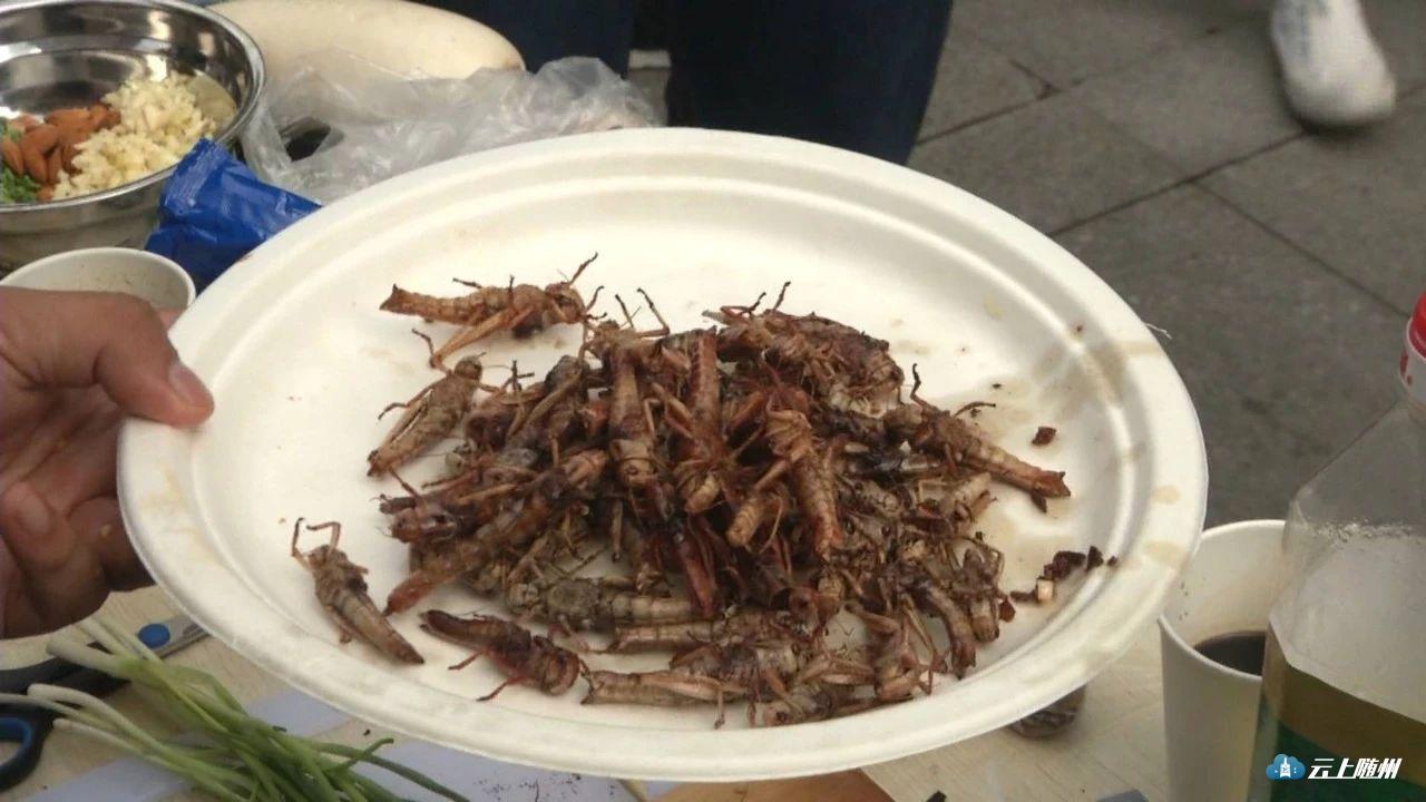 现场还有以竹虫、蝉蛹等食材烹饪的各种美食,一时间,香味四溢,让不少食客前来,一品昆虫盛宴。