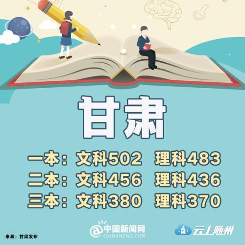 甘肃:一本理科483分 文科502分