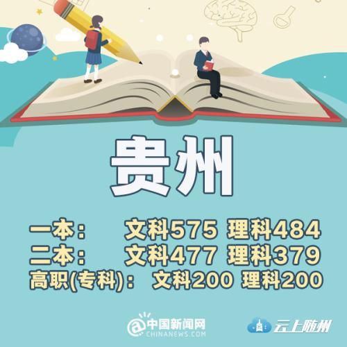 贵州:一本理科484分 文科575分