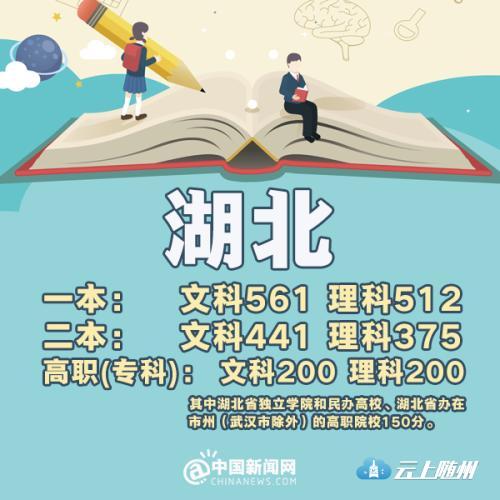 湖北:一本理科512分 文科561分