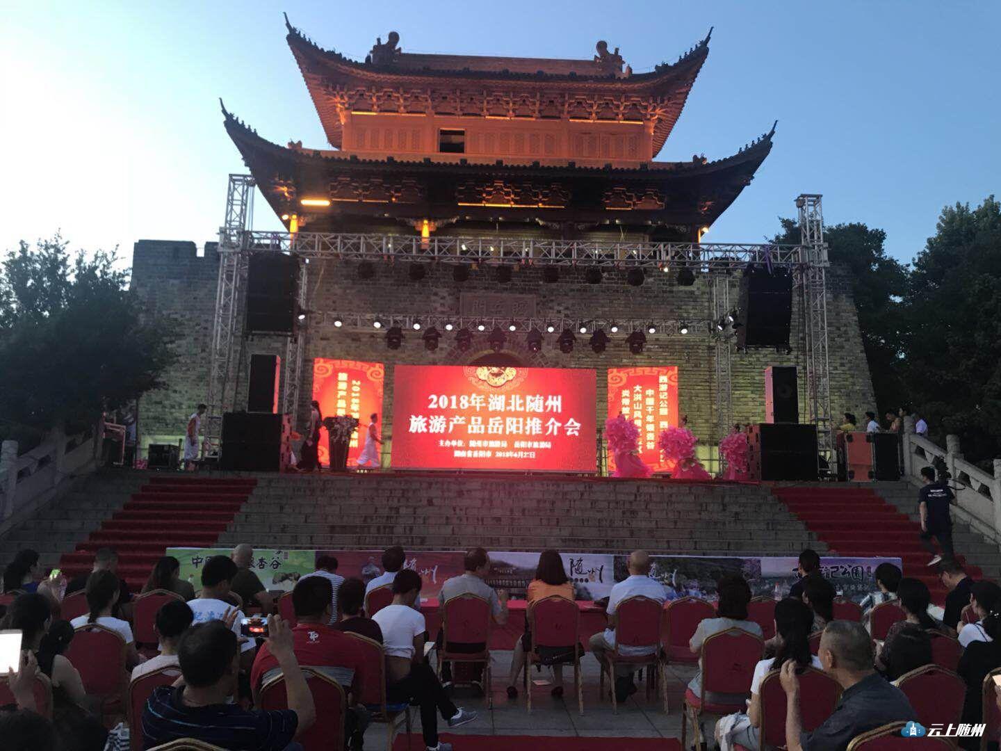 6月27日晚上,市旅游局组织炎帝故里、大洪山、西游记公园、西游记漂流、中国千年银杏谷等景区在湖南岳阳市岳阳楼前巴陵广场举办了随州岳阳推介会,来自岳阳150余家旅行社和20余位媒体记者参加,现场几千市民围观,气氛热烈。这是随州旅游首次在湖南在岳阳的惊艳亮相,也是继去年的河南南阳推介会后再次出省推介;这是市旅游局着眼于拓展随州旅游中远程客源市场,打造随州作为区域性旅游目的地城市的又一重要推介活动,也是落实市委市政府特色产业增长极建设的具体行动。活动受到了岳阳当地旅游同仁和媒体的高度关注,纷纷表达了对随州旅游产品的浓厚兴趣。