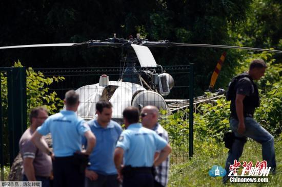 当地时间2018年7月1日,法国戈内斯市,一名叫法伊德的杀人犯在几名持枪歹徒的帮助下,乘坐直升机逃脱。