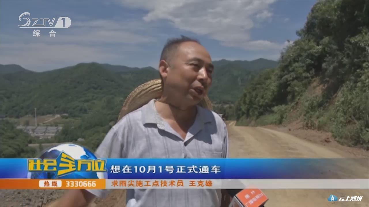 【采访】求雨尖施工点技术员 王克雄:这是原来的老路,新路降下来将近21米,对当地的老百姓和旅游,通行都会带来更大的方便,现在我们正在加班加点的干,想在10月1号正式通车。