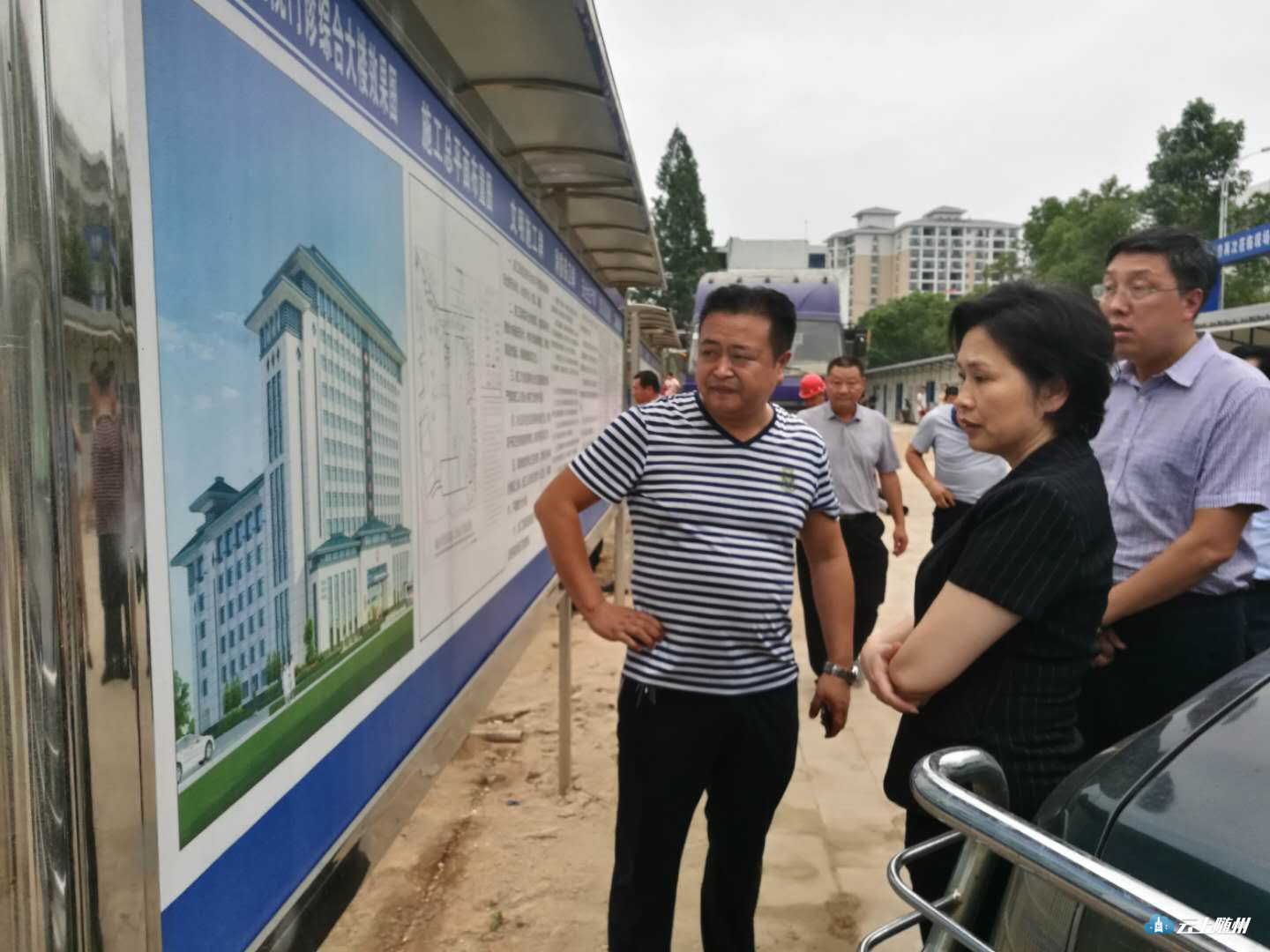 7月2日,县委书记毕道丽、县委副书记、县长陈兴旺带领县直相关部门负责人,就县城建设重点项目的建设进展进行视察和督办。
