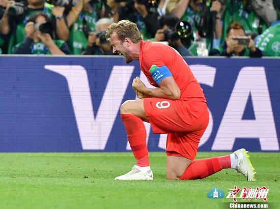哈里-凯恩庆祝。 中新社记者 毛建军 摄