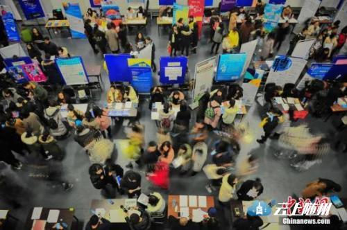 资料图:在“抢人大战”中,一些城市的落户门槛一降再降。图为天津举行的一场招聘会 。 中新社记者 佟郁 摄