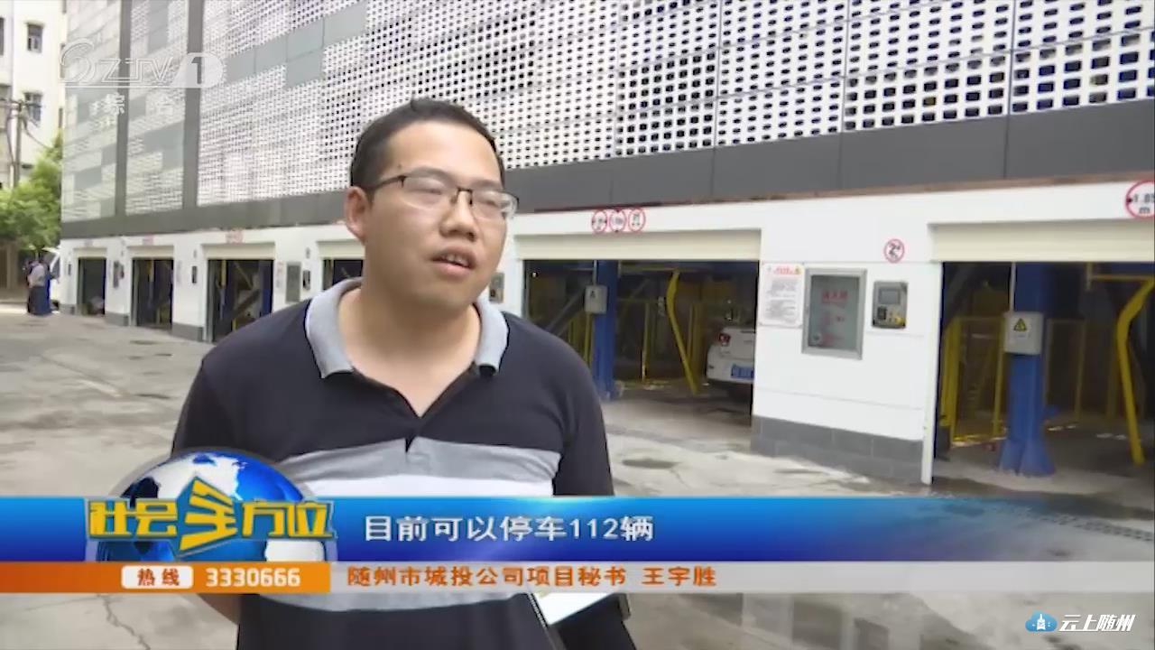 【采访 随州市城投公司项目秘书 王宇胜】原来这个地方有一个平面停车场占地。约三百二十平米。可以停二十八辆车。目前我们利用原有的土地面积。在此基础上修建的这个立体停车场。目前可以停车一百一十二辆。目前我们这个停车场与今年6月投入试运行阶段 欢迎大家来停车体验
