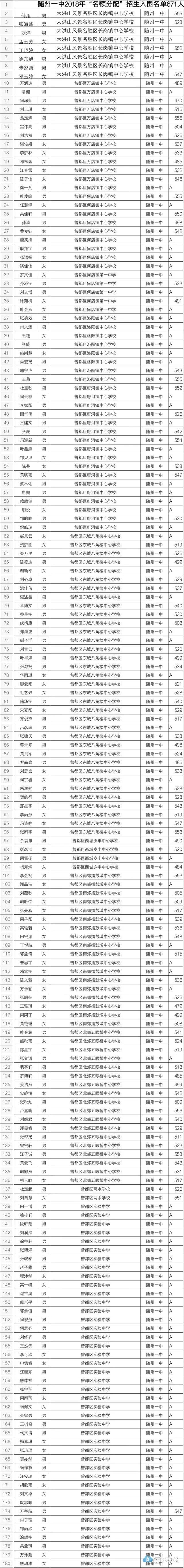 随州市2018年中考名额分配录取公示