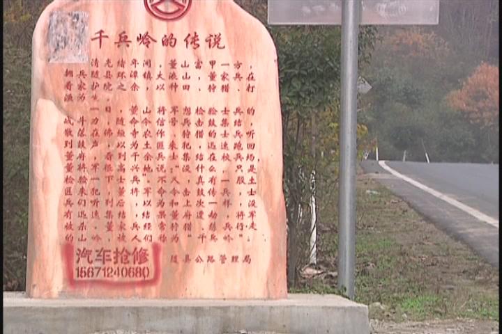 在随南公路洪山段,几名工人正在添补路两旁的白色标线和路中央的黄色标线,新修建的沥青公路在两旁行道树的映衬下犹如一条条绿色长廊。在这条公路上,千兵岭观景台可谓是最引人注目的便民点,它宽敞、开阔,如同一个小型广场,可供十多辆车同时停靠,木制的栏杆、长凳、六角亭也很是美观,让人身心愉悦。