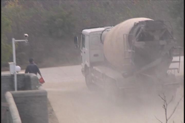 由于杨先生的房子就在A区最外面,记者观察到,每隔一会,就有大小车辆从工地进出,由于这里是必经之路,车辆一过就带起了漫天的粉尘,这些每天不断产生的浓浓粉尘让杨先生感到很反感。