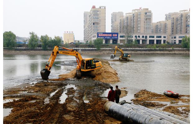 11月15日,挖掘机开到白云湖中作业,为供水管网过河钢管铺设做准备。据了解,新铺设的过河水管将与南郊供水管道对接互通,计划于年底完工,配合氵厥水一桥重建工程,保障城区居民用水安全。