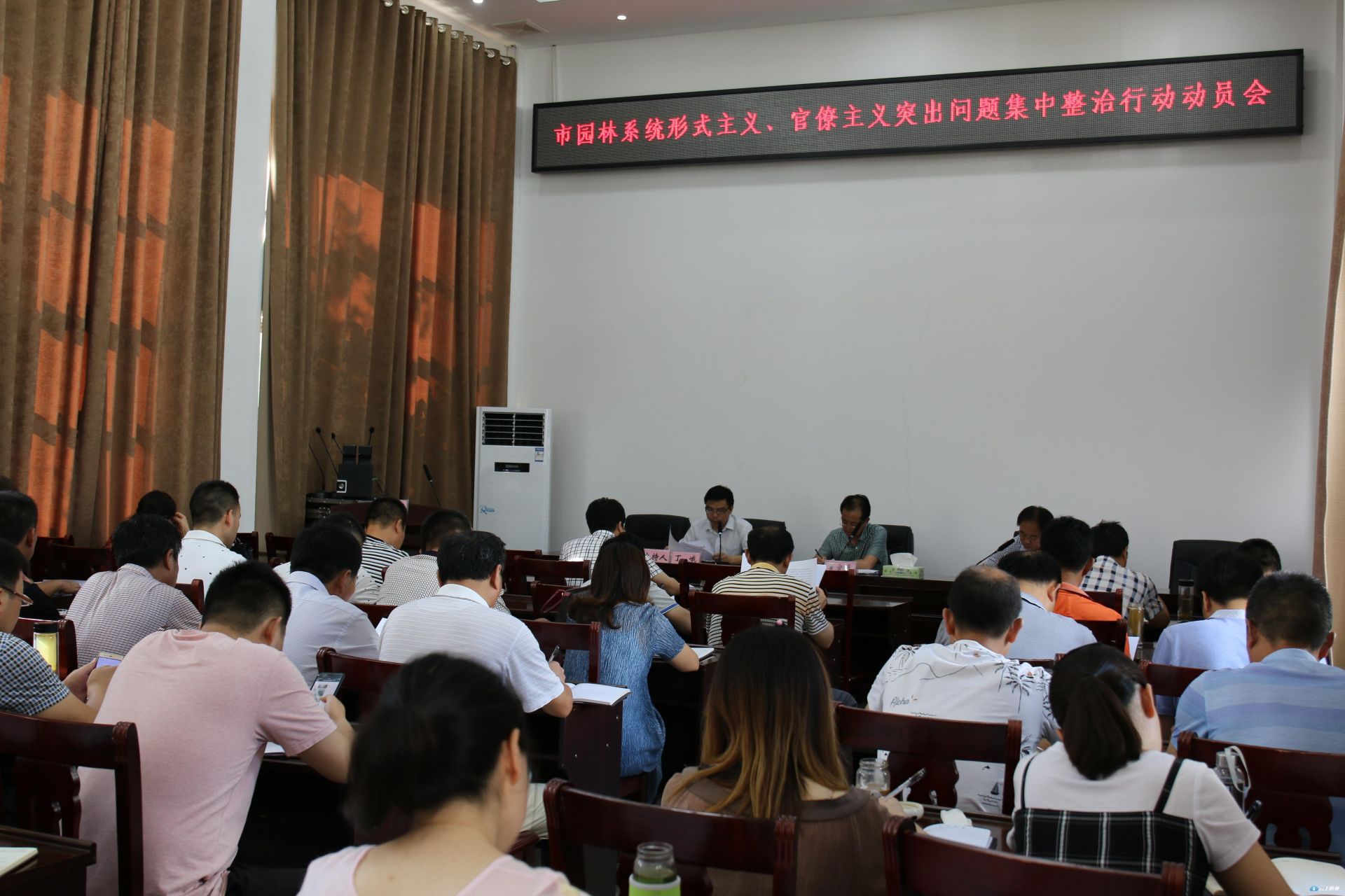 为贯彻落实市委市政府、市住建委开展“形式主义、官僚主义突出问题集中整治行动”和“双评双治双促活动”的通知,促进园林系统党员干部作风转变、担当尽责、干事创业、奋发有为。6月26日,市园林局召开园林系统形式主义、官僚主义突出问题集中整治行动动员会,成立行动领导小组,组织学习并印发了关于形式主义、官僚主义突出问题集中整治行动及开展“双评双治双促”行动方案。并以问题为导向,以整改促提升,结合实际查找园林系统七个突出问题,明确要求“强力整治、靶向打击、严肃曝光、严厉问责、持续震慑”,形成整治形式主义、官僚主义问题的强大声势,并对“双评双治双促”活动作出具体安排部署,确保坚持目标不动摇、整治力度不放松。