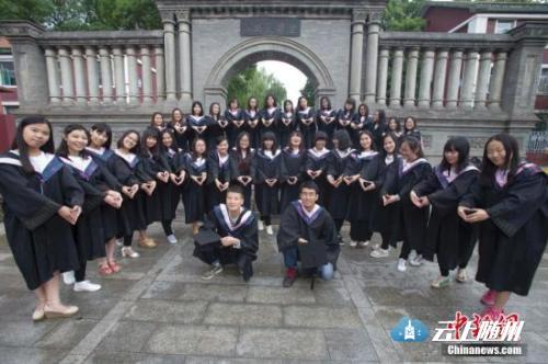 资料图:山西大学毕业生在校园拍摄毕业大合影。中新社记者 张云 摄