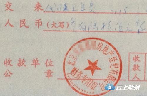 北京某中介机构开具的“代收卫生费”收据,据了解,该中介机构多收了14倍的卫生费。中新网记者 邱宇 摄