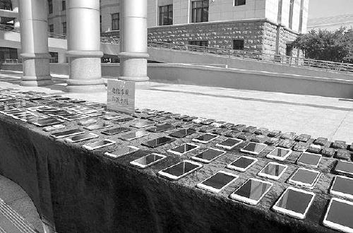 办案人员查获的部分作案手机