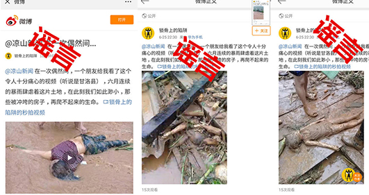传闻:6月25日,有网友发微博感慨道,听说凉山甘洛县六月份连续的暴雨积洪,冲塌了当地居民的房屋,造成人员伤亡,并配以图片与视频。