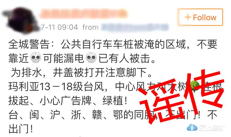 传闻:国内多地出现公共自行车车桩被淹可能会漏电的传言,并称已有人被电击,请民众切勿靠近该区域。