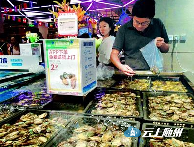 前天,记者来到这家生鲜超市,15个头到20个头的小鲍鱼2.9元一只,稍大的10个头鲍鱼6.8元一个,买的人特别多。买了10只大鲍鱼和大花蛤的孙先生说,这么多海鲜总共不到100块钱,算得上很平价:“现在吃海鲜简直没一点心理负担。”