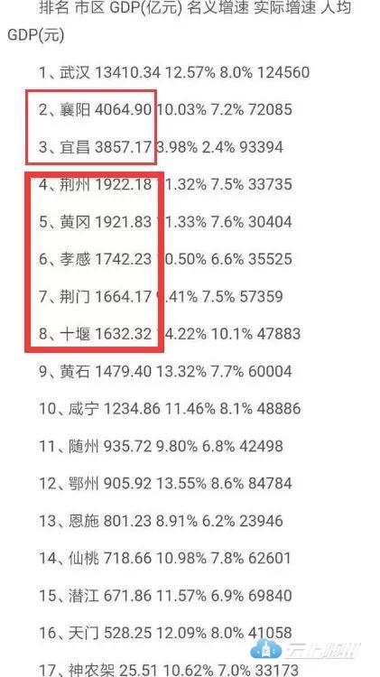 (图为:2017年湖北省各市州GDP数据)