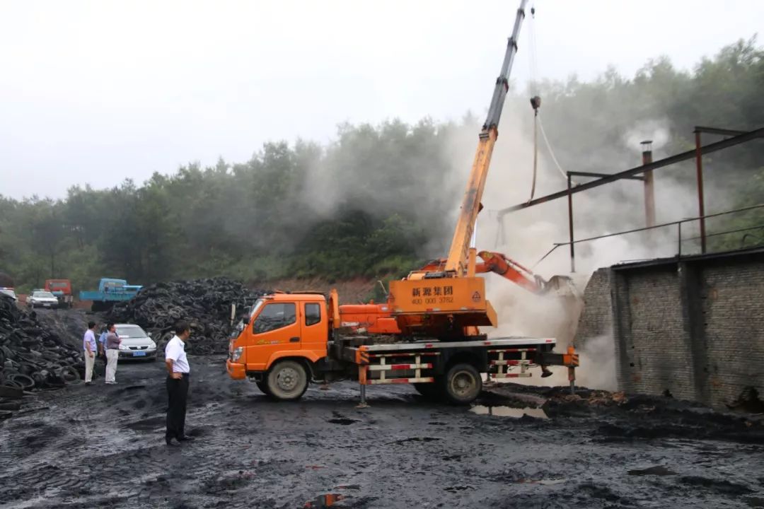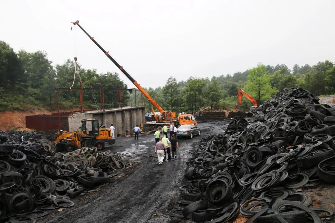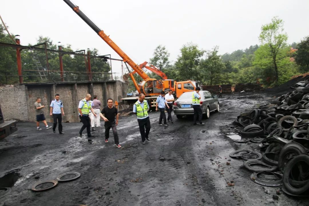 “这些就是炼油的原材料,约有200多吨,若炼出产品出售,可获利120余万元。”镇安监办王斌主任指着这些橡胶轮胎说。