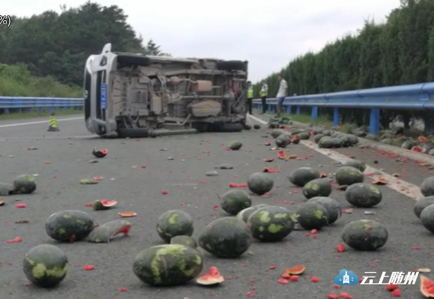 7月13日12时许,省高警广水大队民警在麻竹高速巡逻时,发现一辆银色的轻型货车发生了侧翻事故,路上洒落的全是西瓜。民警迅速做好警戒,查看车上人员和事故损失情况,了解到货车上就驾驶员一人,且未受一点伤。民警先清出一条道让过路车辆通行,减少交通受阻,再询问阳师傅事故的经过。据阳某某说,他是从板门店收来一车西瓜,趁着中午运到广水去卖,谁想到行驶在高速上时车后轮爆胎了,方向盘晃动得太厉害,一下没有控制好,车子就翻了。当时车上运了一千八百斤西瓜,以时速90码的速度行驶,突然车子胎爆了,致使车辆侧翻,还好自己没有事,就是可惜了辛苦贩来的一车西瓜了。