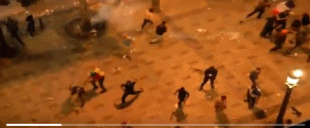 在里昂,法国电视一台的记者马提斯(Yannis Matisse)称,庆祝活动只持续了很短的时间。世界杯比赛结束几分钟之后,就发生了投掷物和催泪弹的互相攻击。