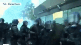 15日晚,在香榭丽舍大街,打砸抢分子与法国共和国治安部队发生冲突。当晚11时起,前者开始向治安部队扔掷瓶子等物品,遭到后者以催泪弹回击。有记者在现场看到,人们纷纷从临近街道逃离,随后,冲突蔓延至凯旋门。