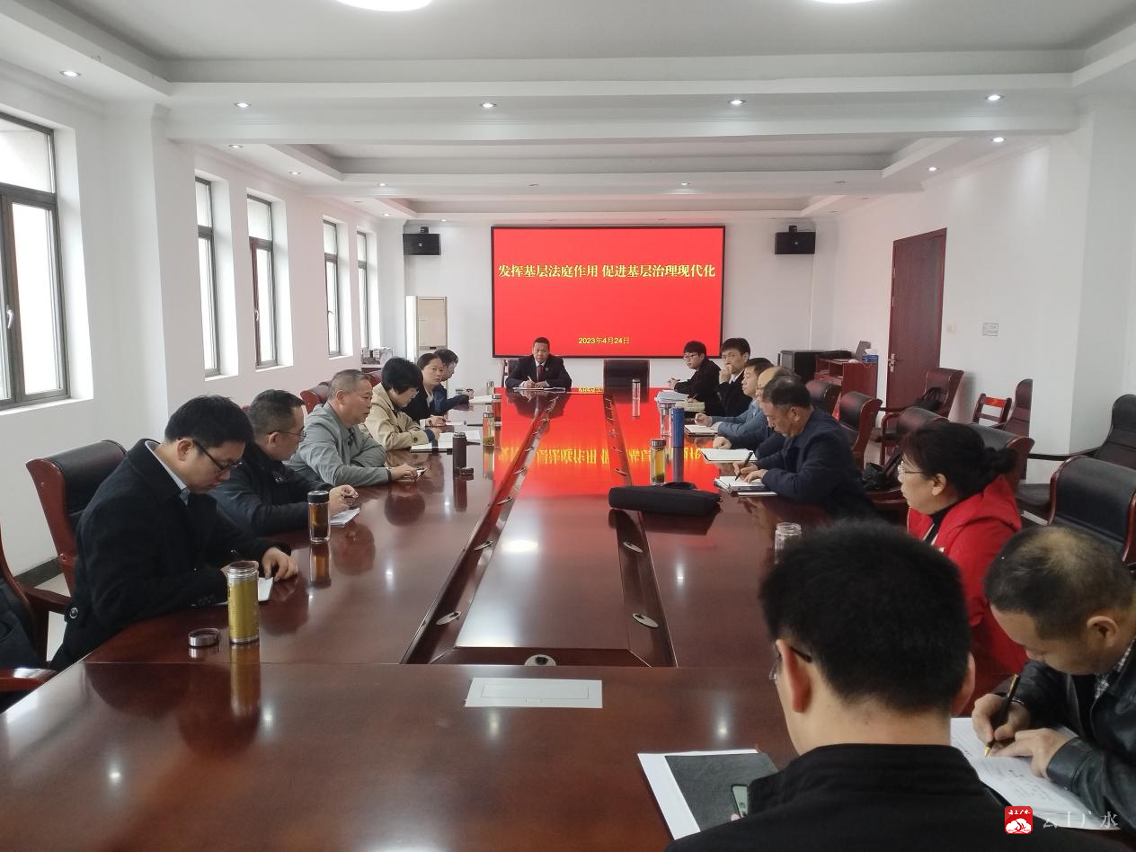 为充分发挥基层法庭作用,推进法治乡村建设,维护社会稳定,促进基层社会治理现代化,2023年4月24日,市人大以“发挥基层法庭作用,促进基层治理现代化”为主题,组织市政法委、市纪委、市法院、陈巷镇等相关单位负责人、市镇两级人大代表到陈巷调研法庭建设和法庭依法履职相关工作,随后召开座谈会。