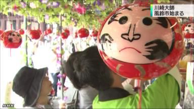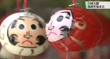 川崎大师是消除种种灾难厄运相当灵验的除厄大师。本次的“风铃集市”汇聚福岛县色彩艳丽、装饰豪华的风铃,也有京都的复古风铃。17日是活动的首日,整个上午现场都挤满了人群,争相购买中意的风铃。