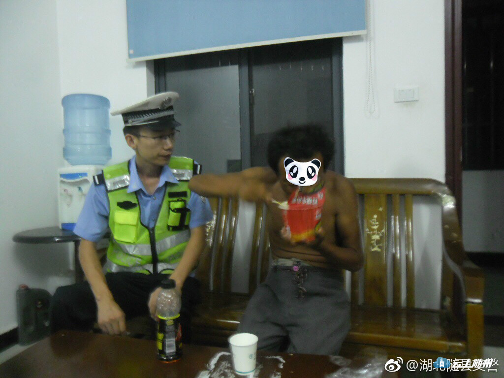 7月18日23时许,随县交警大队三中队民警刘继承、辅警鲁力出警归队途中,车行至316国道肖畈村路段时,发现公路上躺着一人,两人迅速下车查看,该人,男性,约三十多岁,体表无外伤。两人将男子扶到警车上,几经询问,男子却闭口不言,神情异常。考虑到安全问题,民警将他带回中队,让他稍作休息后,鲁力又买来方便面、饮料让他补充体能。